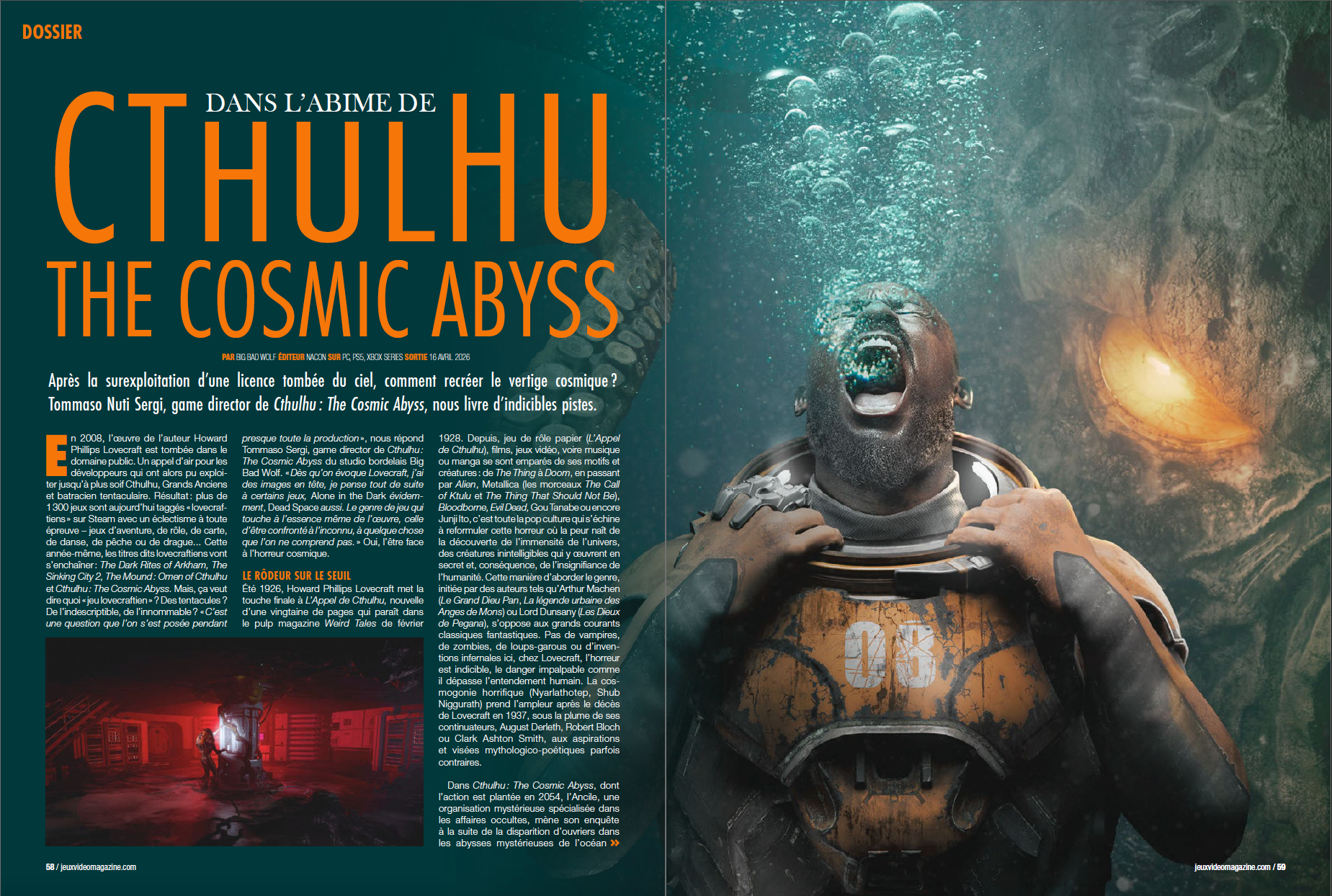 On se penche ensuite sur les aventures plus linéaires du nouveau James Bond (007 First Light), là encore, avec ses concepteurs, ou encore sur un des nombreux jeux inspirés de l’œuvre de Howard Philip Lovecraft, avec Cthulhu: The Cosmic Abyss. Des Focus sur 1348 Ex Voto, Cyberpunk 2077 (et Refused, le groupe qui prête voix et guitares à Johnny Silverhand) ou encore sur Akira Yamoaka (Retour à Silent Hill) suivent.
